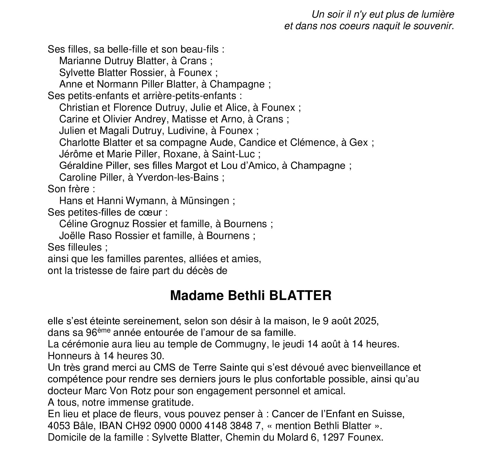 Avis mortuaires / Remerciements