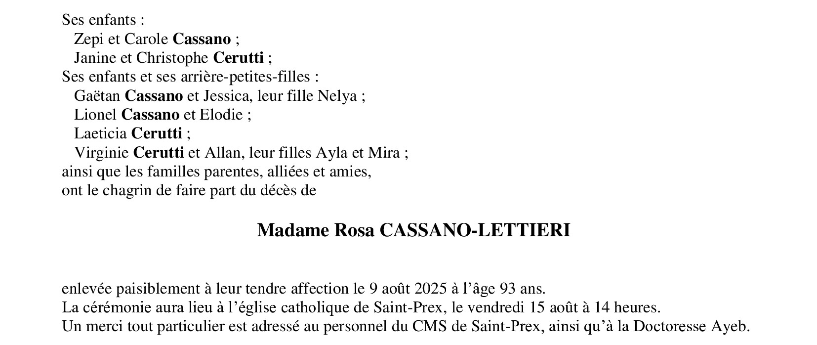 Madame Rosa CASSANO-LETTIERI